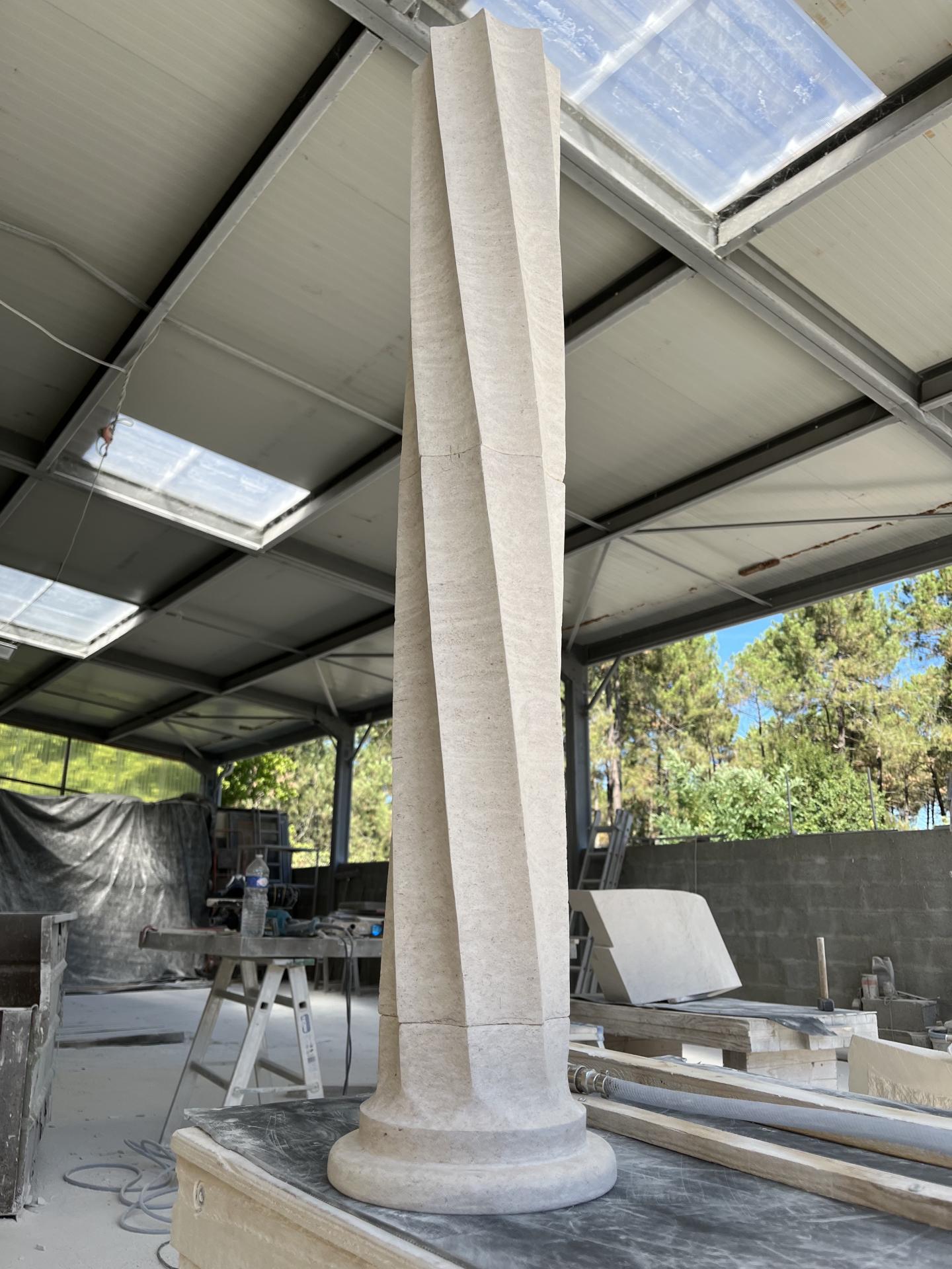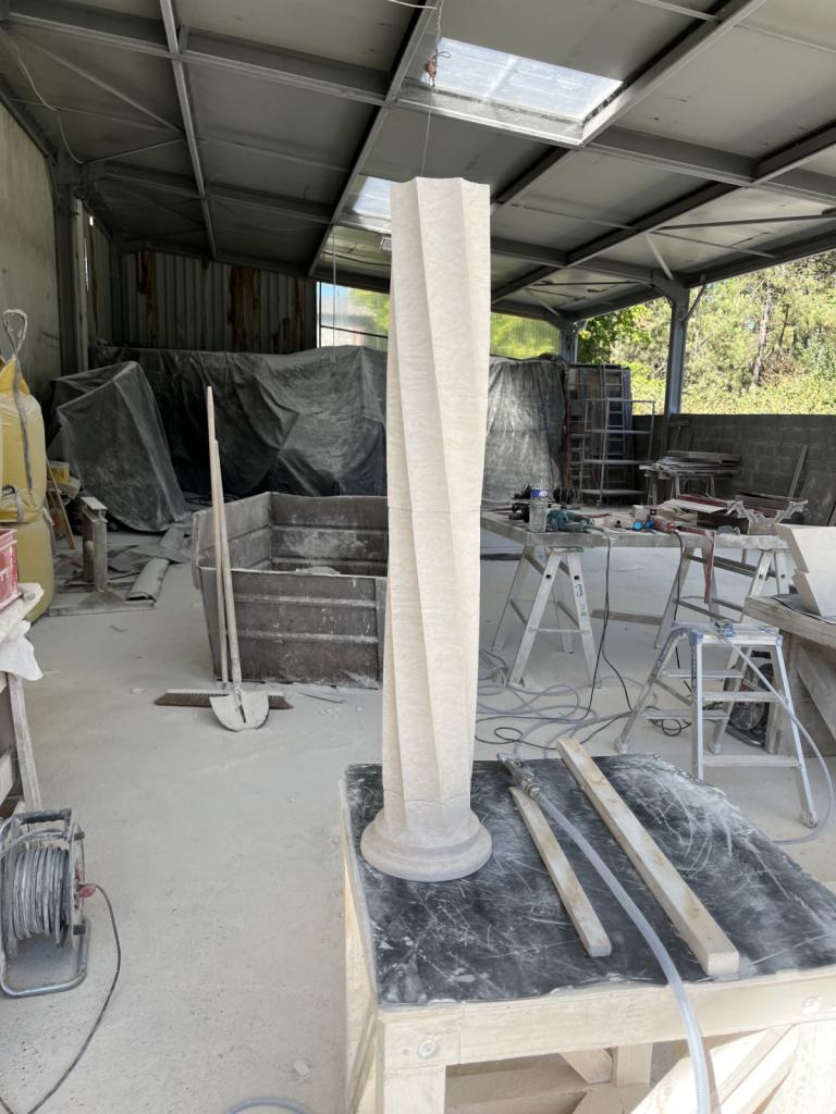 À La Teste-de-Buch, nous avons façonné dans notre atelier une colonne torse ainsi que sa base, en pierre de Vilhonneur marbrière. Ce travail sur mesure a été réalisé pour soutenir un escalier dans une maison à l’architecture remarquable. La pierre de Vilhonneur, aux nuances élégantes et à la texture noble, offre une finition raffinée et durable. Chaque étape a été pensée pour respecter l’esprit du lieu et assurer une intégration parfaite dans le bâti existant. Chez RPC Tailleur de Pierre, nous privilégions toujours la qualité, le respect de l’esthétisme architectural et l’exigence artisanale qui fait la signature de nos réalisations.